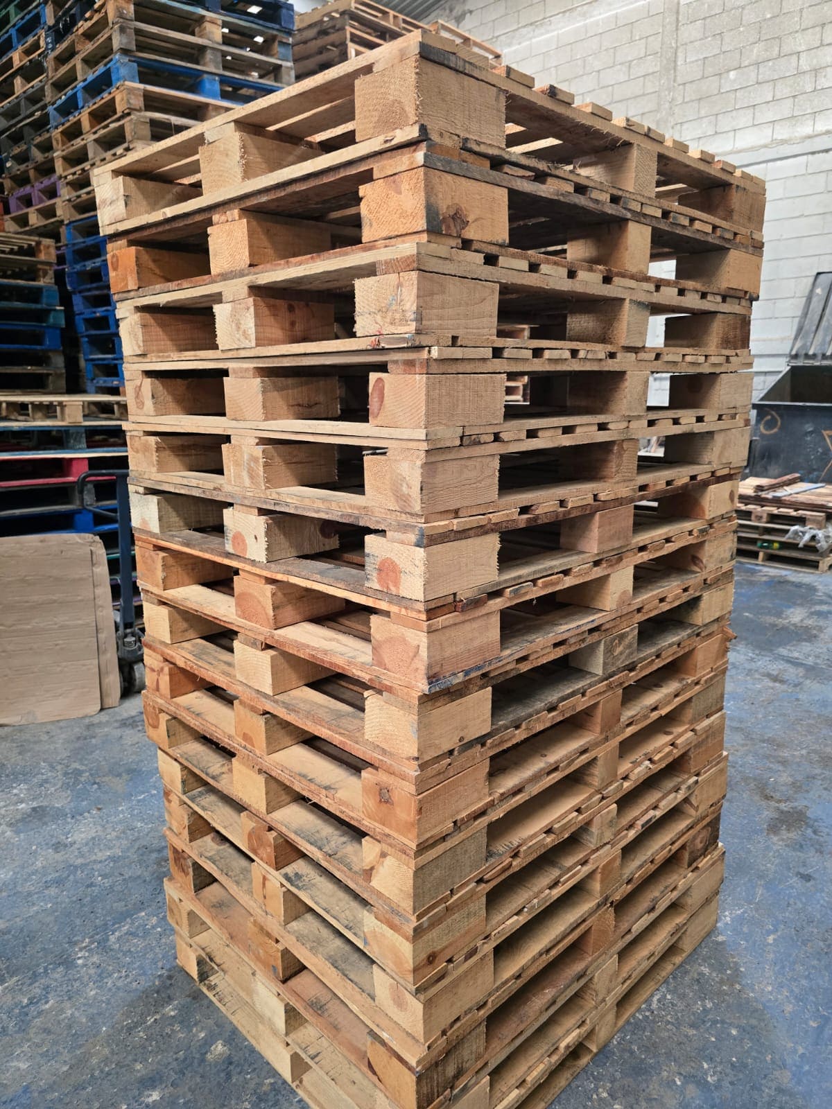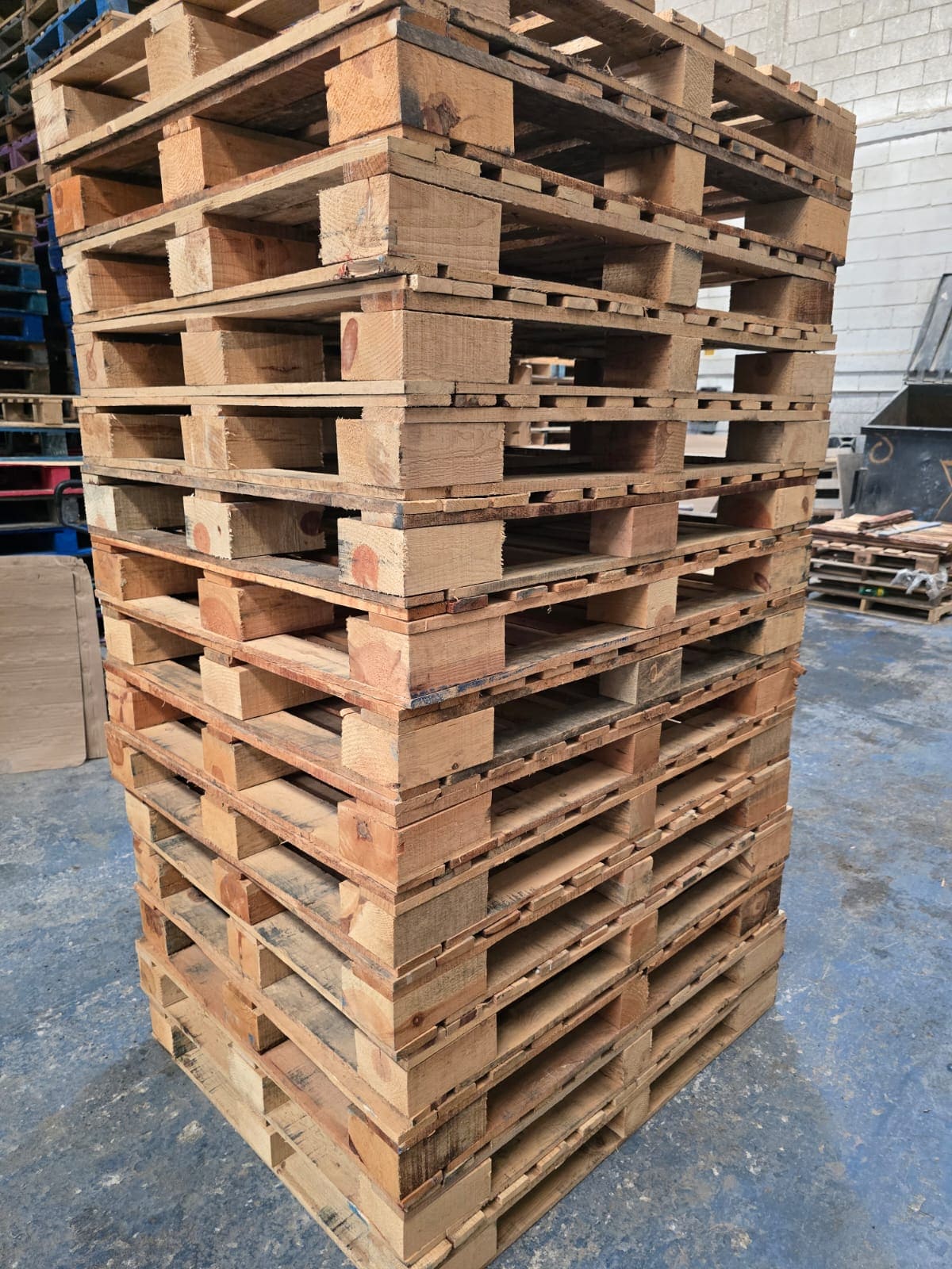 La tarima de cubo grande es una plataforma de carga fabricada con madera tratada térmicamente, que cuenta con bloques (“cubos”) más altos y robustos para soportar cargas mayores que una tarima de cubo estándar. Es ideal para exportar mercancía pesada, maquinaria, productos industriales y materiales voluminosos.